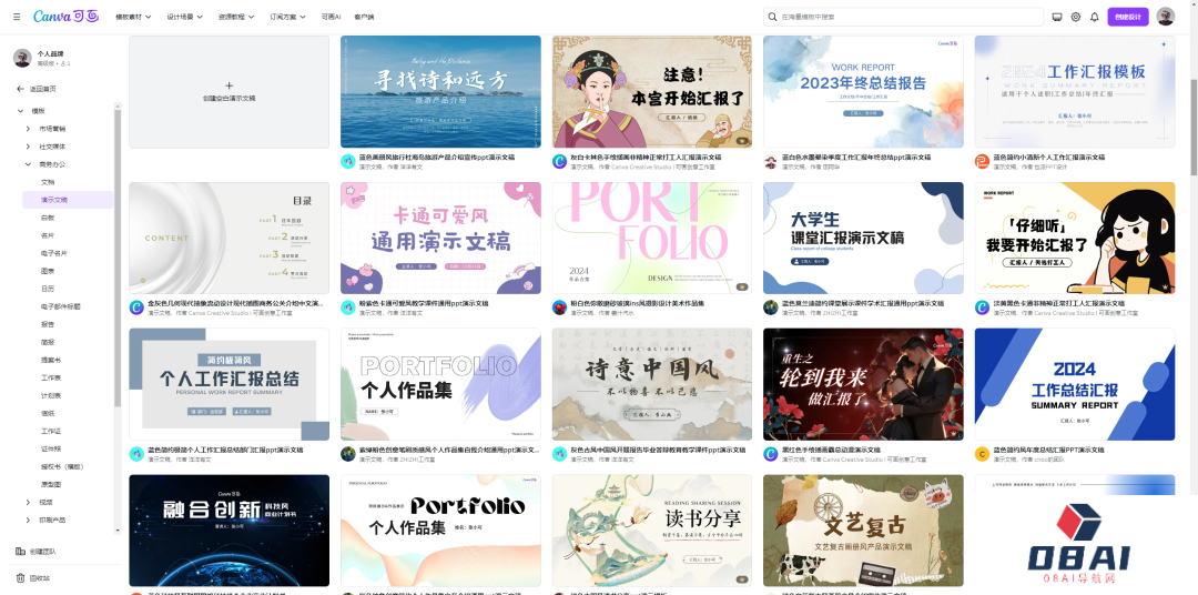 另一种就是结构型PPT,就是为了当个课件、当个差事,只要把一个事情结构化、逻辑化的讲清楚就行。在过往,其实PPT模板也已经很成熟了。比如Canva里面,一抓一大把。