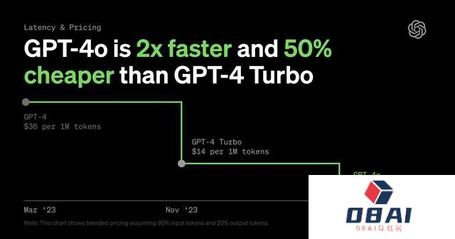 GPT-4o速度比GPT-4 Turbo快2倍,价格则便宜了一半