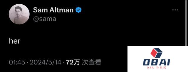 奥特曼还发文“her”,或许也表达了他对GPT-4o的评价以及对未来的畅想(在电影《Her》中,人工智能助手Samantha主动给男主人公打了电话,告知他一些事情)。