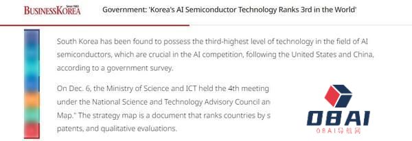 据CNMO了解,韩媒近日援引调查报告称,韩国在AI(人工智能)半导体领域拥有全球第三高的技术水平,仅次于美国和中国。