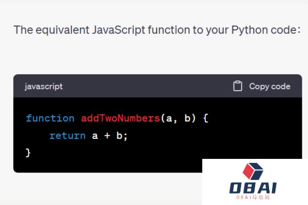 在此过程中,ChatGPT 可能是一个有用的工具。例如,如果你有一个需要翻译成JavaScript的Python函数,你可以将这个函数提供给ChatGPT,并要求它执行翻译。