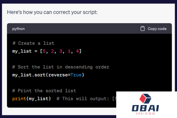 当您的代码出现问题时,您可以向 ChatGPT 提供故障代码和问题描述。AI 工具将尝试识别并纠正问题。