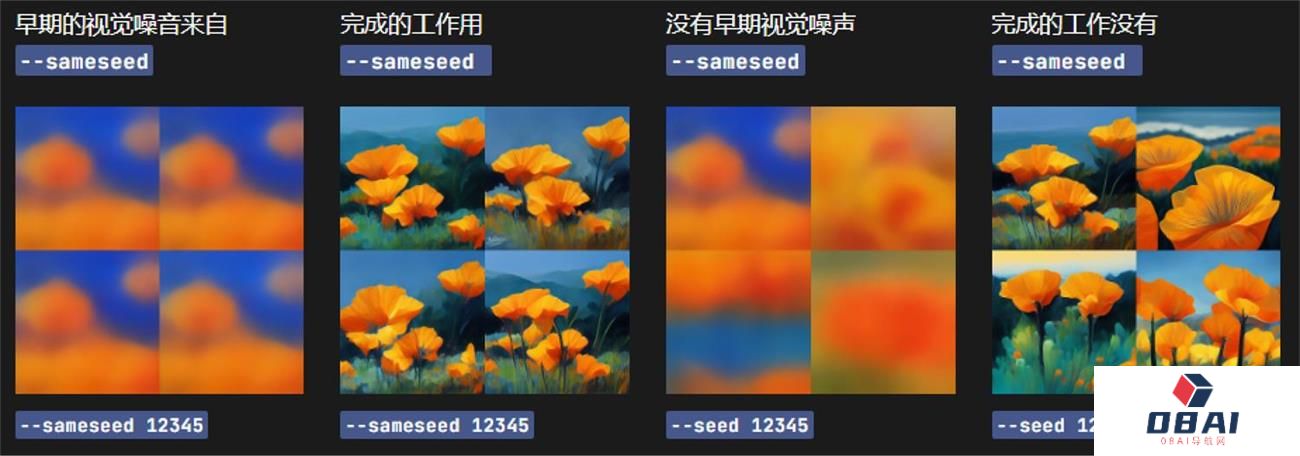 --seed 值创建一个大的随机噪声场,应用于初始网格中的所有图像。指定时--sameseed,初始网格中的所有图像都使用相同的起始噪声,并将生成非常相似的生成图像。