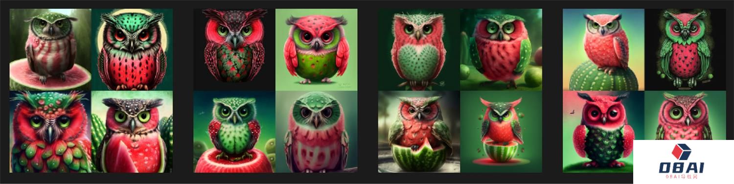提示示例:imagine/ prompt watermelon owl hybrid --c 100