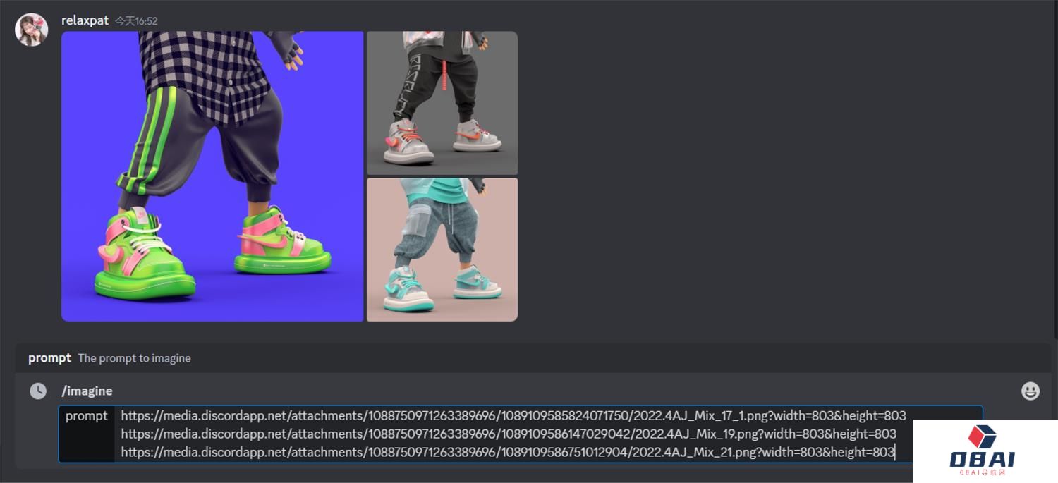 然后把链接复制到“/imagine”里,可以多个链接使用:
