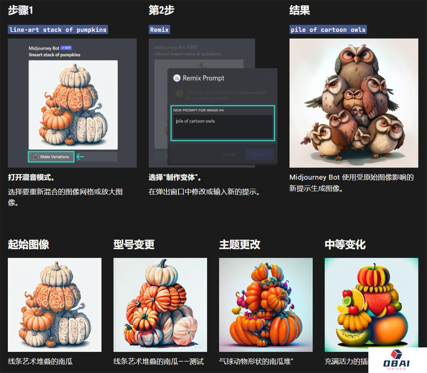 /prefer remix 使用命令或使用/settings 命令并切换按钮激活混音模式 ? Remix Mode。Remix 更改图像网格下的变化按钮(V1、V2、V3、V4)的行为。启用 Remix 后,它允许您在每个变体期间编辑提示。要重新混合高档选择? Make Variations。