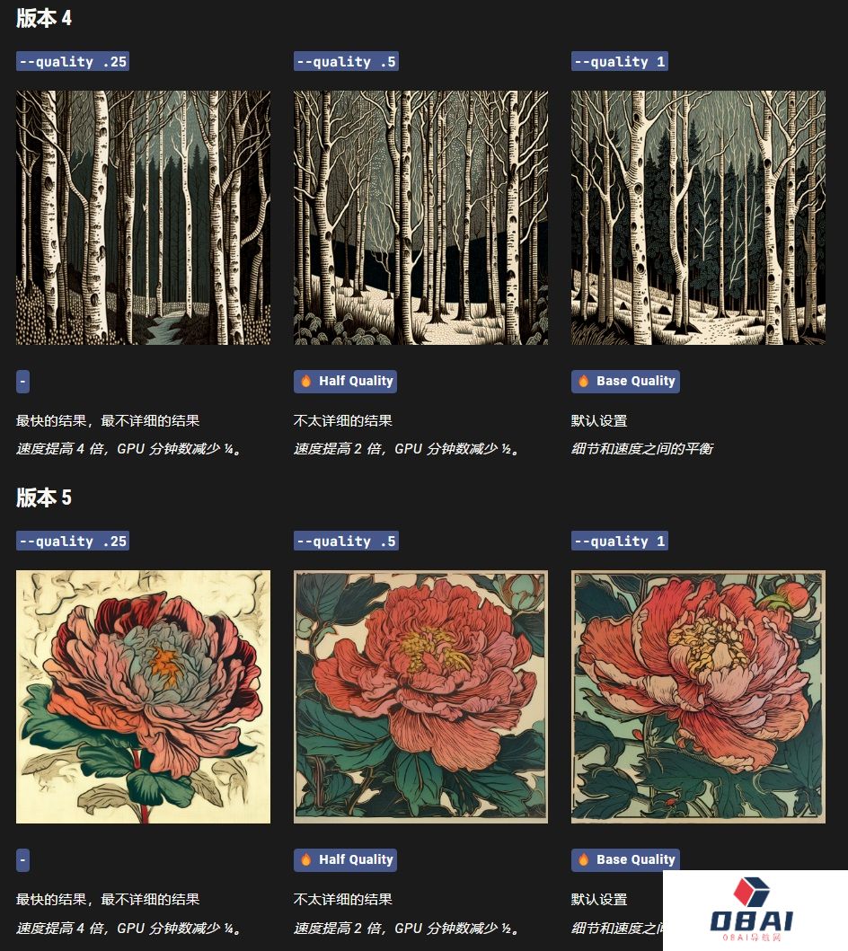 --quality 适用于模型版本 1、2、3、4、5 和 niji。
