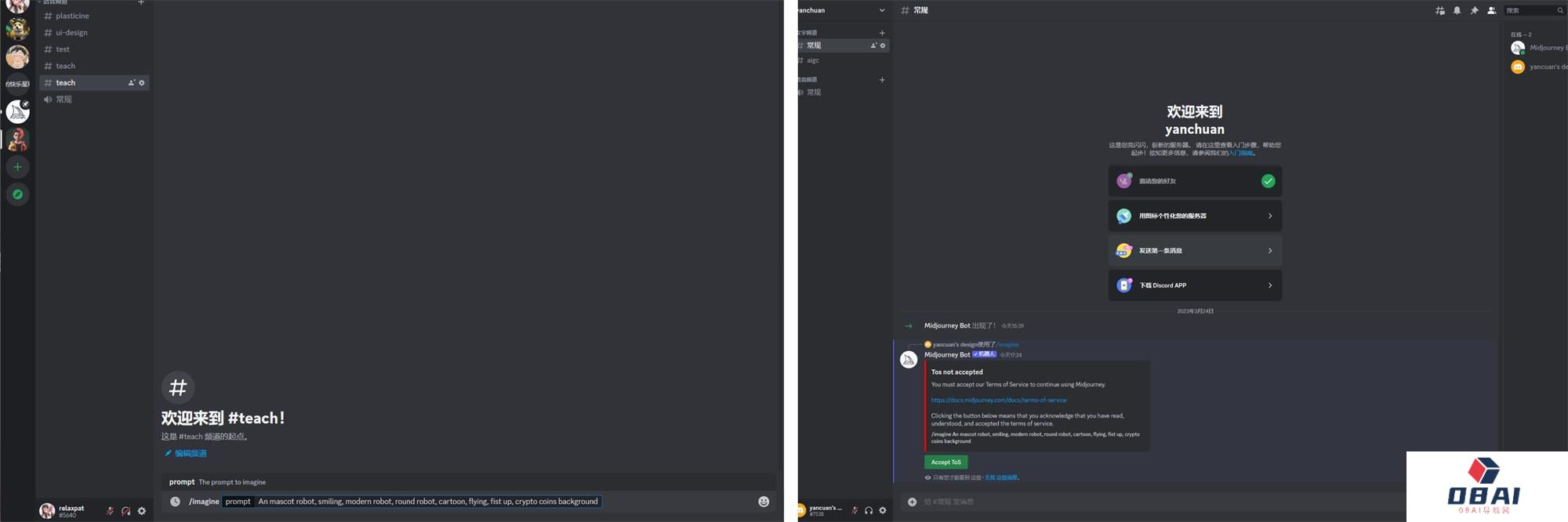关键词生成图片回到我们的服务器,然后在下面的输入框输入“/”,它会弹出一系列的命令(如果没弹窗,退出重新登录即可),点击“/imagine”,会出现如下画面:
