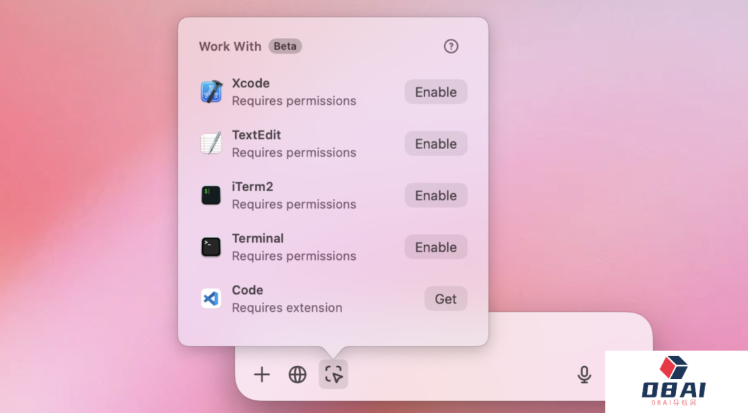 现在,MacOS平台的开发者可直接从ChatGPT桌面客户端跳转访问Visual Studio Code、Xcode和Terminal等知名的编程工具软件,无需再从ChatGPT将代码复制到开发工具内,减少了来回切换,简化了开发工作流程。
