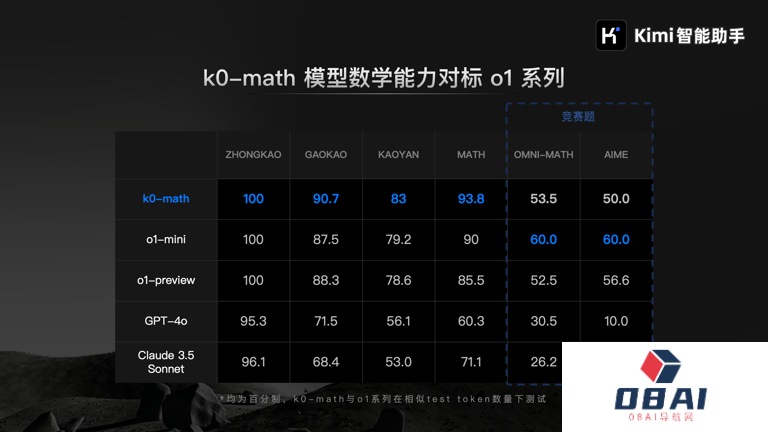 11月16日,国内人工智能大模型创业公司月之暗面基于Kimi Chat大模型发布了新一代的数学推理模型k0-math。基准测试显示,Kimi k0-math的数学能力可对标全球领先的OpenAI o1系列已经公开的两个模型版本:o1-mini与o1-preview。