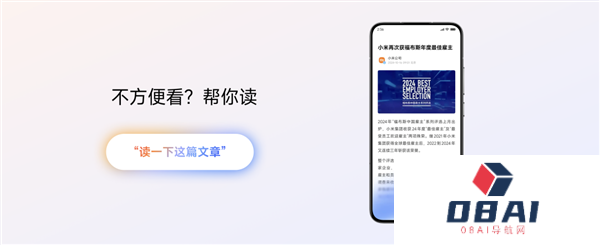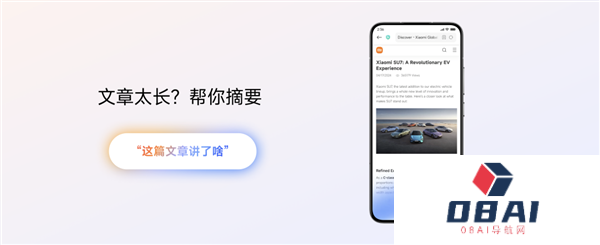 它还是一个操心的“大管家”,当你需要跨应用或者用多个设备时,超级小爱可以帮你轻松完成。比如一篇很长的文章,你不方便看的时候,它可以自动帮你总结摘要。比如当你想吃顿好的,刷一些美食推文时,超级小爱可以自动识别餐馆地址,告知距离以及建议通行方式。