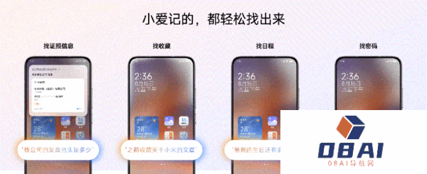 超级小爱帮你记忆的内容,都能很轻松的找出来;没记录的,小爱也能帮你找出来,甚至还可以找屏幕上的信息,比如朋友给你发他的航班号,你可以问小爱“这个航班还有多久到?”,小爱会自动检索航班信息。