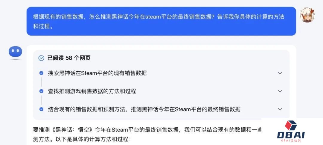 Kimi就知道要先搜索现有销售数据,再找推测模型,最后给我答案。