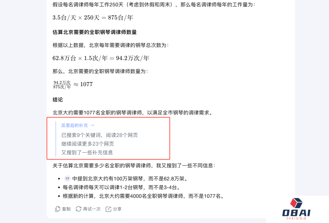除了会分步骤进行搜索推理之外,Kimi额外加了反思层,不过这个反思层貌似不是每次都触发。