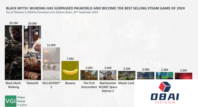 我也专门去看了下专门监测相关内容的VG insight,截止9月20日统计的steam销售数据和Kimi给的回答一致。(PS:这个图里第四的Banana是个免费游戏,Kimi没抓它的销量是对的。。。)
