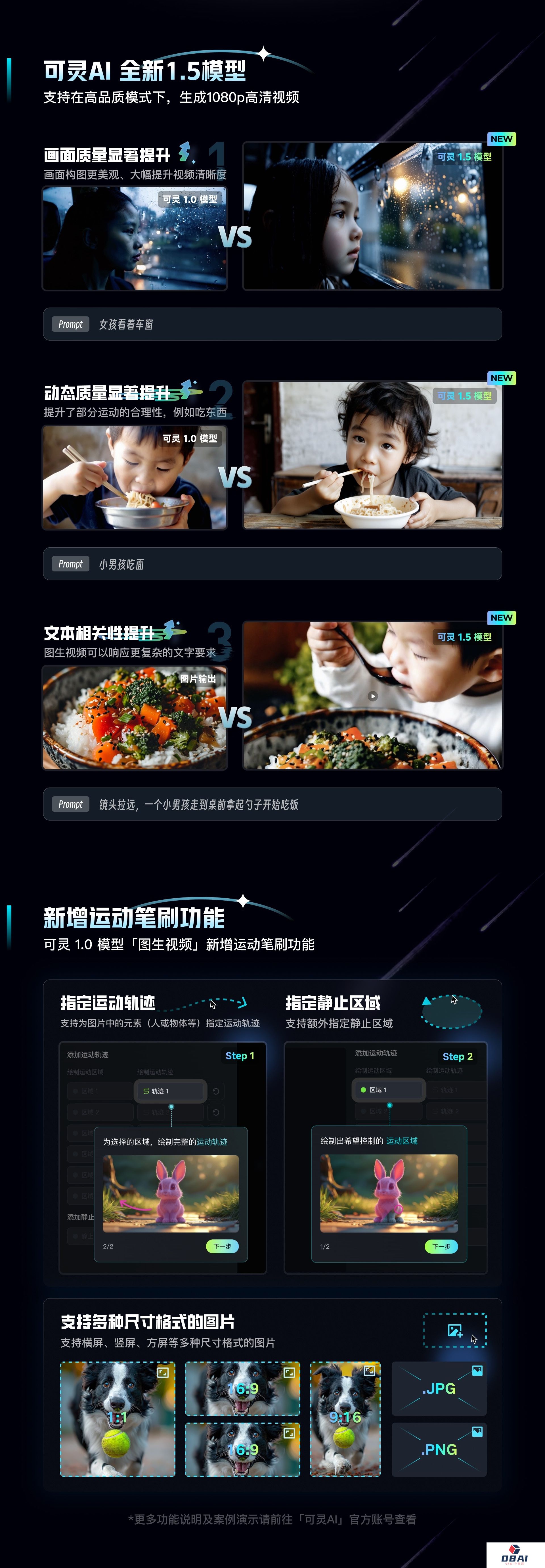 9月19日,快手旗下AI视频创作平台「可灵AI」对外发布可灵V1.5 模型,新增“运动笔刷”功能。可灵 V1.5 模型是可灵 AI 首个较大数字的版本迭代,针对用户反馈的需求,增强了 AI 视频的生成后编辑能力。