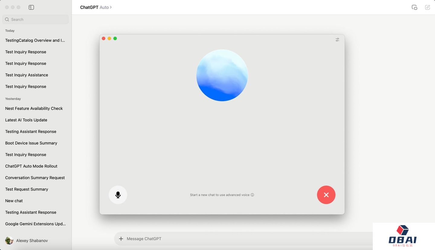 而在 macOS 版的 ChatGPT 应用上,同样发现了一些新的功能线索——在语音模式界面中,代表 ChatGPT 语音的熟悉黑色圆形图标已被替换为随语音播放而滚动的天空动态动画。