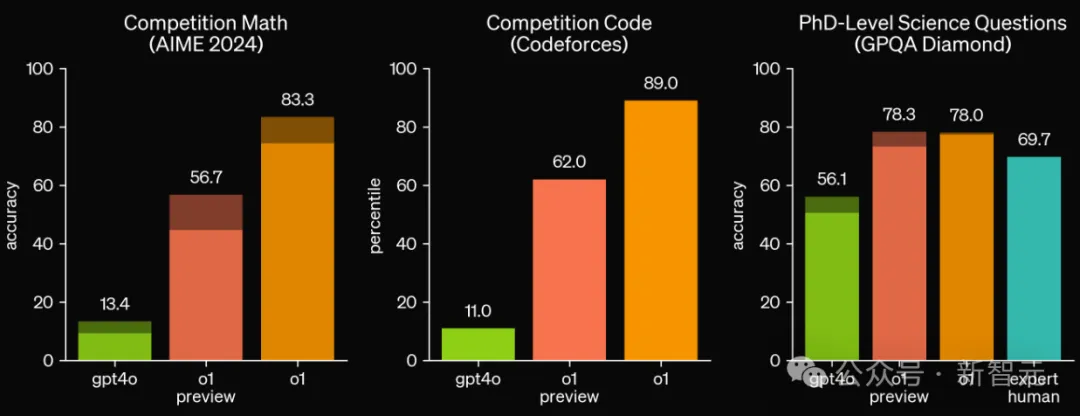在具有挑战性的推理基准测试中,o1大幅超越了GPT-4o
