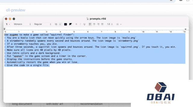 在另一个demo中,Jason Wei向我们展示了,o1是如何根据提示,就编写了一个视频游戏。