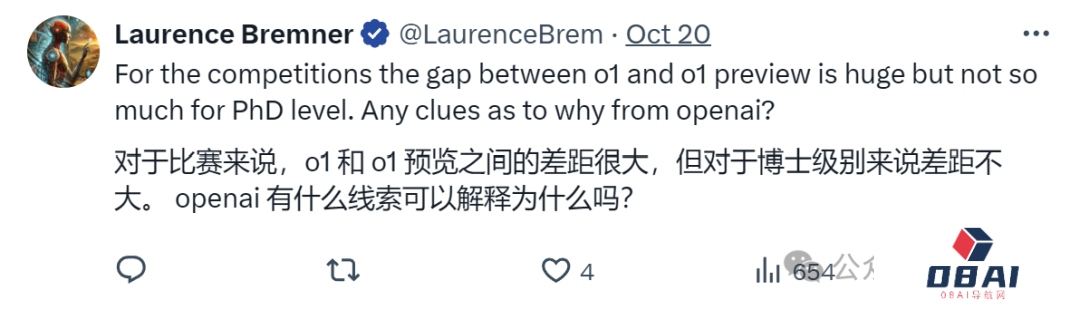 而回到一开始的问题,为什么在PhD级别的科学任务上,满血版o1竟打不过o1-preview?