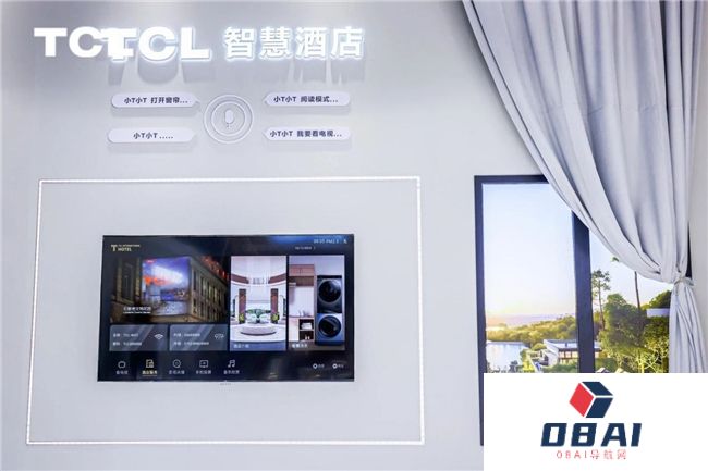 在智慧酒店展示区,TCL实业展现了其搭载AI语音大模型的全套客房方案,以客房刚需的电视作为语音中枢和蓝牙网关,无缝连接酒店内的各种场景生态设备,实现比传统语音更加直观的可视化操作,“一屏”即可满足所有功能。