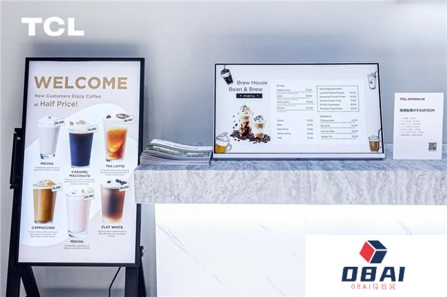 值得一提的是,TCL信发产品均集成了TCL EShow信息发布系统。通过TCL EShow,用户可以轻松管理并远程发布至所有终端设备,实现内容的精准投放,并能依据不同门店的需求设定定时发布。此外,TCL在前台特别配置了23.8英寸电子桌牌,高亮度、类纸化的显示效果带来了传统咖啡厅标牌的质感,也带来了更便捷的内容修改能力,方便门店保持格调的同时能够随时上新。