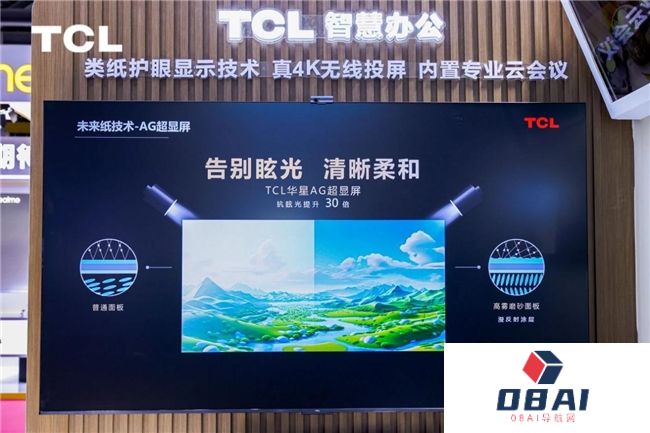 在智慧办公展示区,TCL办公智屏展现了创新的办公场景应用,该产品采用了行业首创的未来纸显示技术。TCL办公智屏使用了高品质的皇冠级低蓝光灯珠及TCL华星AG超显屏,能模拟出自然纸张的阅读质感,给用户提供更加舒适、高效的办公视觉体验。