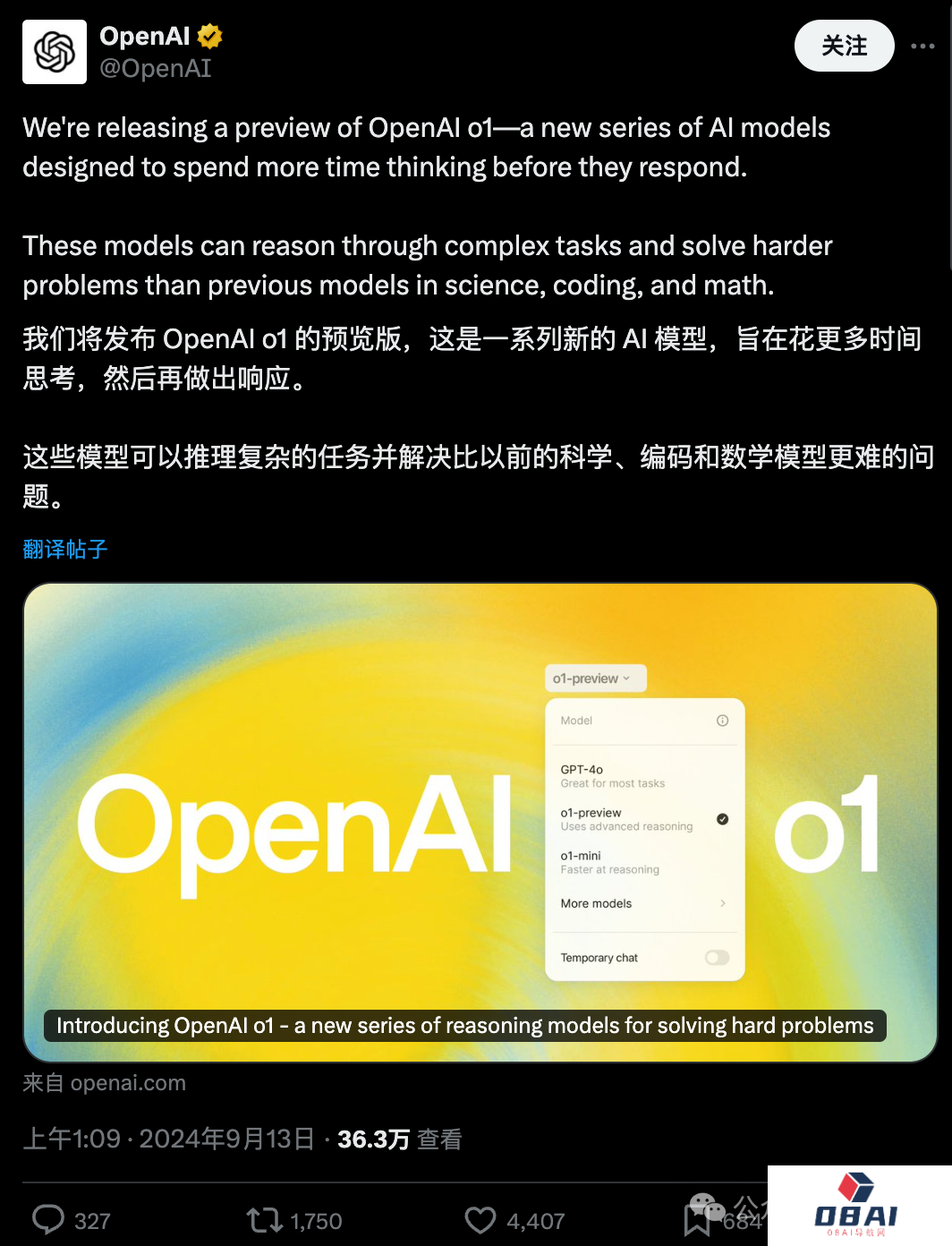 具体来说,o1系列是OpenAI首个经过强化学习训练的模型,在输出回答之前,会在产生一个很长的思维链,以此增强模型的能力。