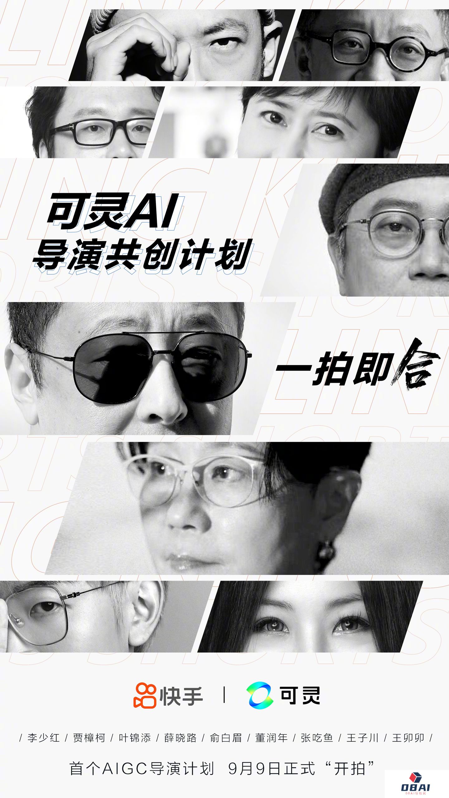 快手将联合李少红、贾樟柯、叶锦添、薛晓路、俞白眉、董润年、张吃鱼、王子川、王卯卯等 9 位导演,制作出品 9 部 AIGC 电影短片,9 部短片将全部由可灵 AI 进行视频生成。