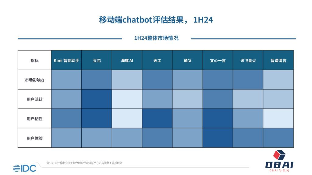 IDC选取了目前国内最主流的 8 款聊天机器人应用进行评估。尝试通过市场活跃性来揭示聊天机器人在实际应用场景中的表现与局限。