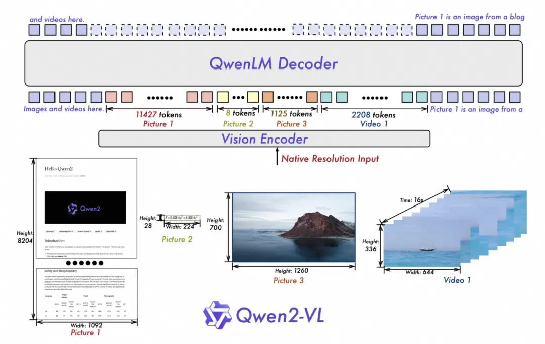 可以读懂不同分辨率和不同长宽比的图片,在 DocVQA、RealWorldQA、MTVQA 等基准测试创下全球领先的表现;