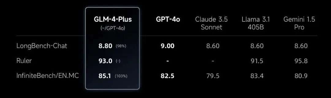 此外,在 GLM-4-Plus 模型的训练过程中,智谱 AI 通过采用更精准的长短文本数据混合策略,显著增强了模型在长文本推理方面的表现。