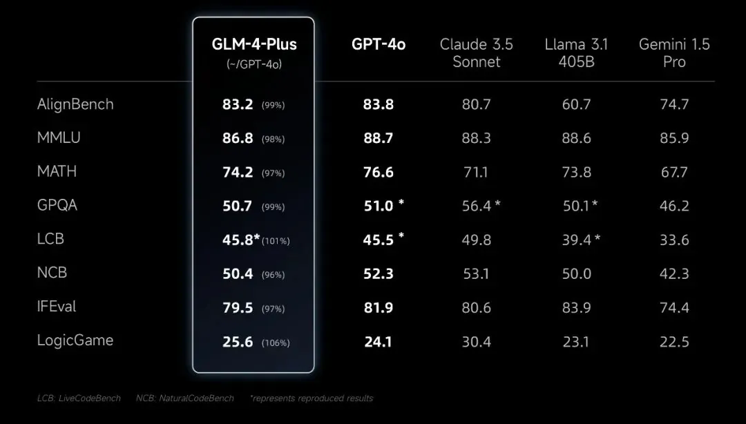 智谱 AI 还表示,GLM-4-Plus 基础模型在各项指标上,实现与 OpenAI 的 GPT-4o 等头部大模型第一梯队水平相持平。