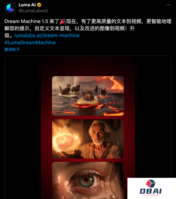 据 Luma AI 官方在推特(X)发布公告消息显示,知名的AI视频创作平台 Luma v1.5版本已经在近日正式发布,在视频生成方面获得巨大改善。