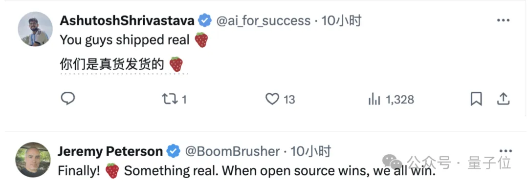 网友更是惊叹,原来这才是真正的“草莓”,这是开源的胜利,也是所有人的胜利。