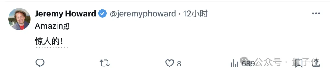 fast.ai创始人Jeremy Howard看了直呼amazing。