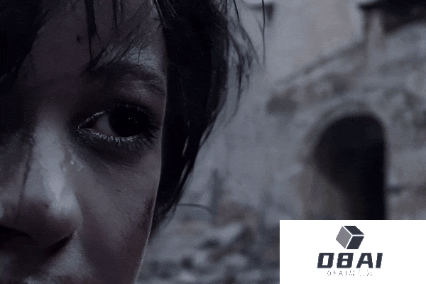 在一个饱受战争蹂躏的城市,废墟和残垣断壁诉说着满目疮痍,在这个令人心碎的背景下,一个凄美的特写镜头定格了一个年轻的女孩。她的脸上沾满了灰烬,无声地证明着周围的混乱。她的眼睛里闪烁着悲伤和坚韧,捕捉到了这个因冲突而失去天真世界的原始情感。