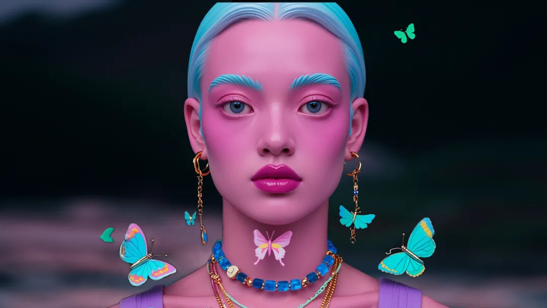 Prompt:butterfly candle, in the style of y2k aesthetic, pop-culture-infused, jewelry by painters and sculptors, text and emoji installations, money themed, playful animation, humble charm