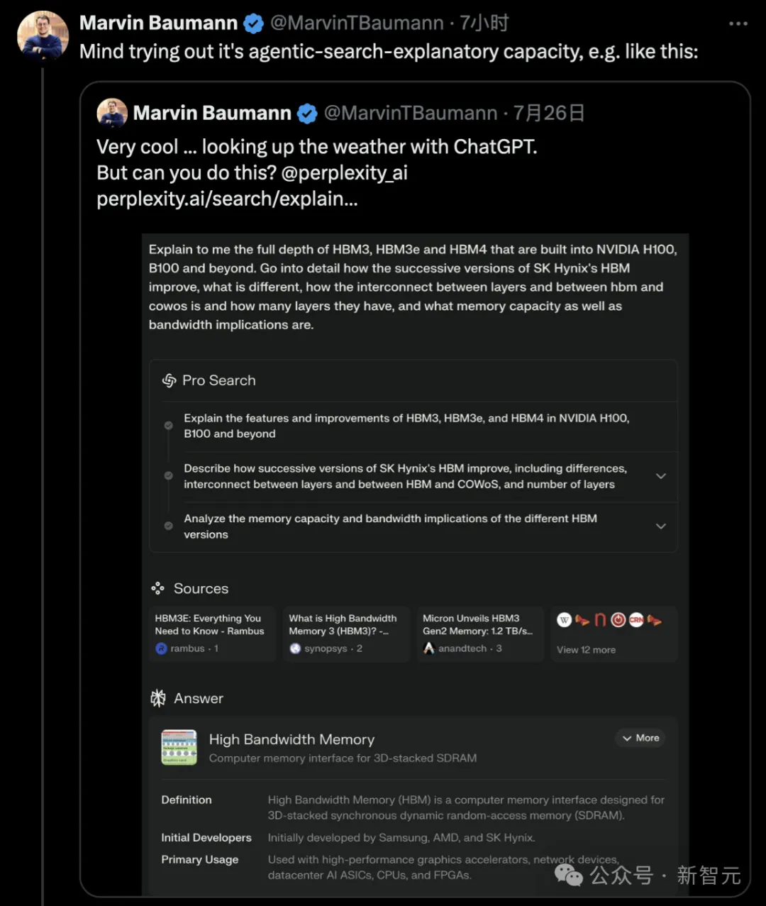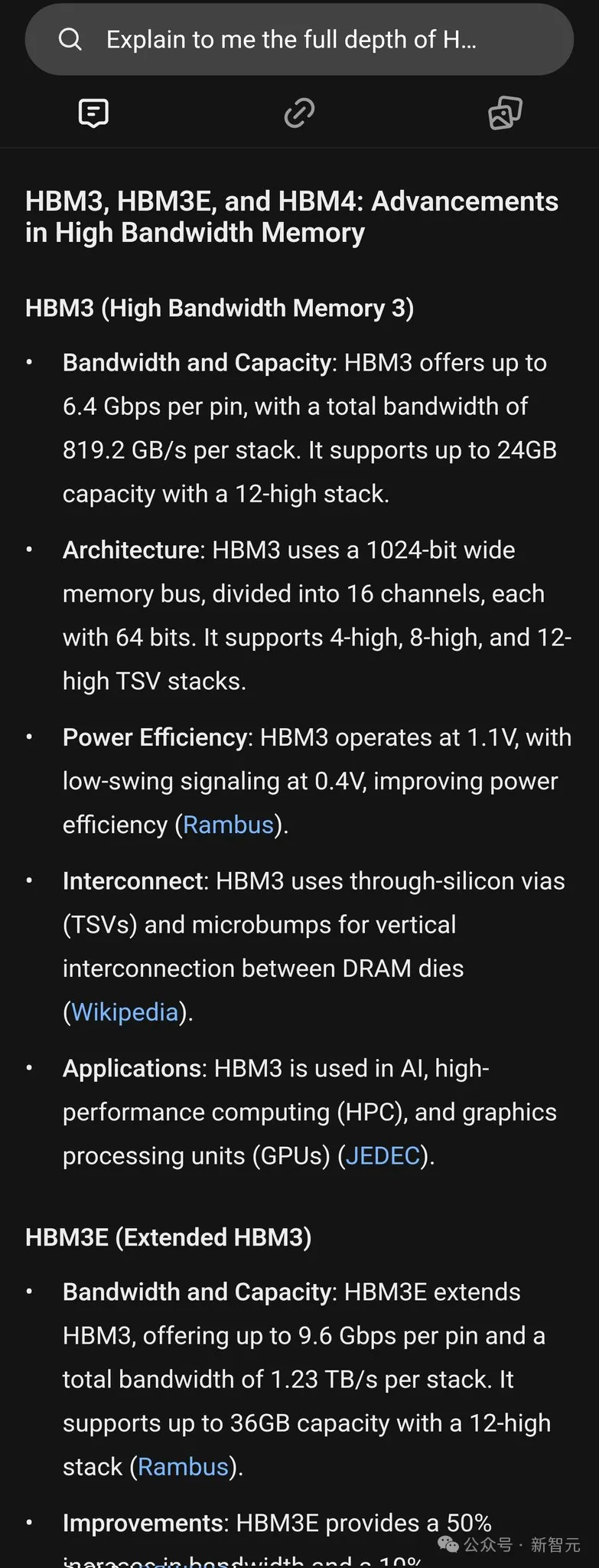 SearchGPT在给出关于高带宽存储器的解释中,蓝色标出的内容,是参考解释。