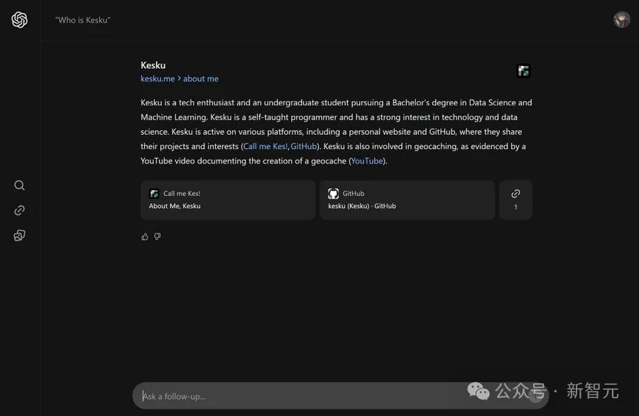 Kesku自己测试的另一个demo,呈现了SearchGPT的小部件。