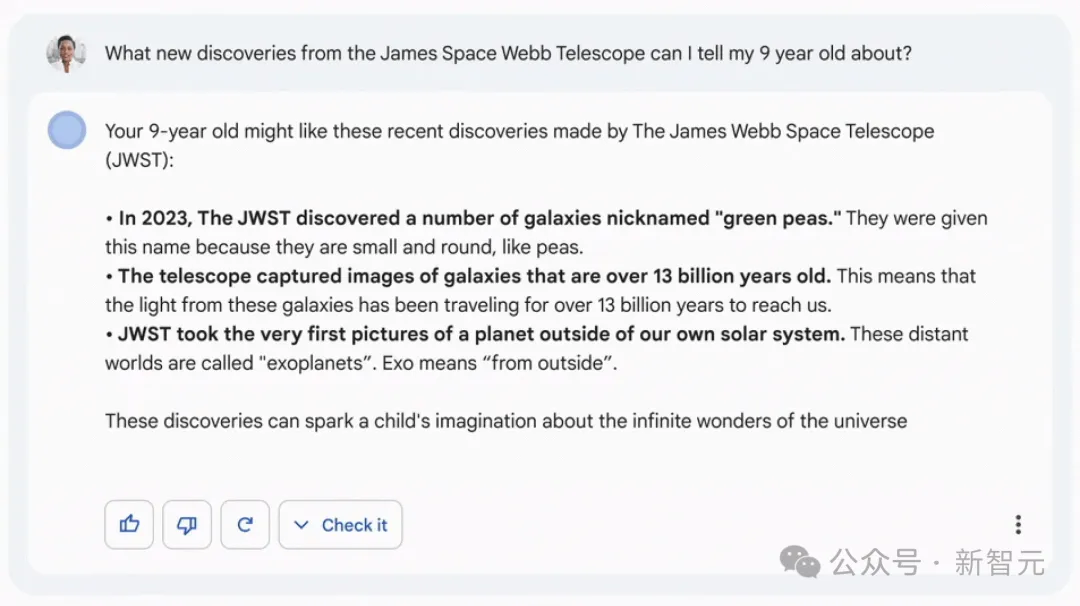 2023年2月,谷歌推出了这个聊天机器人产品以对抗ChatGPT,但首次亮相就出现了事实性错误,导致Alphabet股价当天暴跌9%,市值瞬间蒸发1000亿美元。