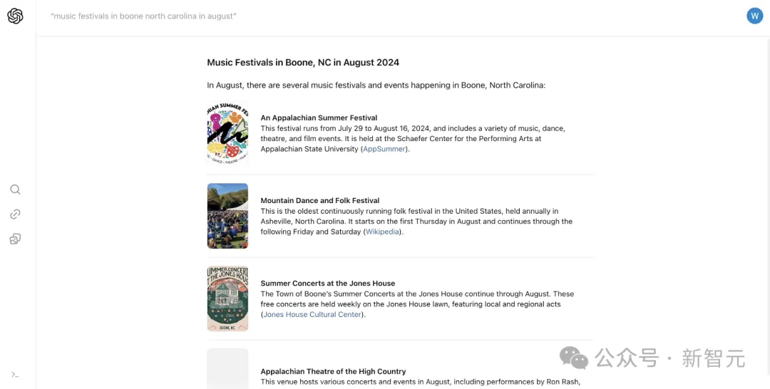 在回答「8月在北卡罗来纳Boone举办的音乐节」的问题时,SearchGPT竟弄错时间,出现了幻觉。