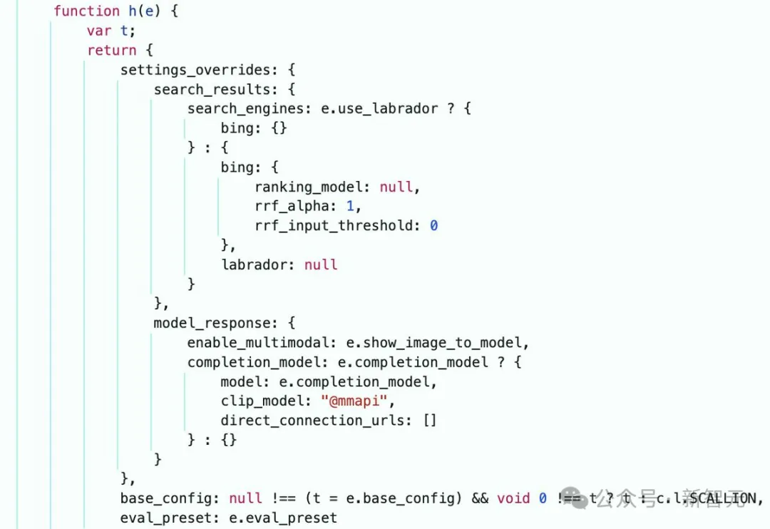 源代码不仅露出了Bing的接口,而且可以发现,搜索结果由多模态模型提供支持。