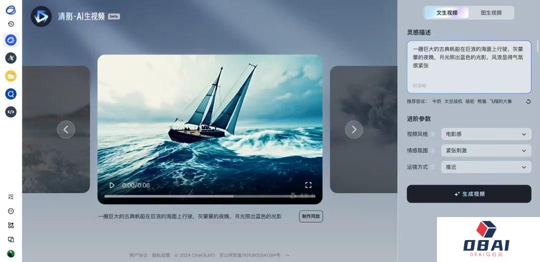 即日起,「智谱清影」面向所有用户开放使用,无需预约等待。输入一段文字Prompt,用户可以选择自己想要生成的风格,包括卡通3D、黑白、油画、电影感等,配上清影自带的音乐,30秒的时间,清影就能生成充满AI想象力的视频片段。