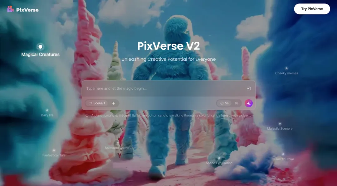就在智谱清影发布前几天,快手的可灵 AI 在全球开放内测, 而另外一个被认为 Sora 的 PixVerse 发布了 V2版本,支持一键生成 1-5 段连续的视频内容。