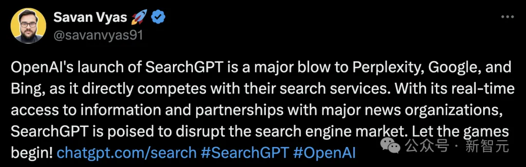 网友直言,SearchGPT对Perplexity、谷歌、必应都是迎头重击,让游戏开始吧!