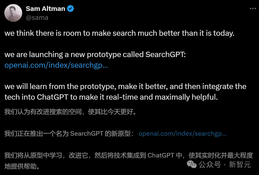 奥特曼在X上官宣此消息,大胆直言:「当今的搜索功能还有改进空间」!