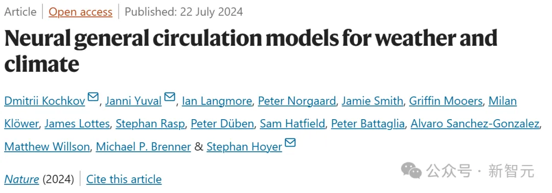 这项研究成果也被刊登在了Nature上,研究团队大部分来自Google Research和DeepMind,还有MIT、哈佛和ECMWF的科学家。