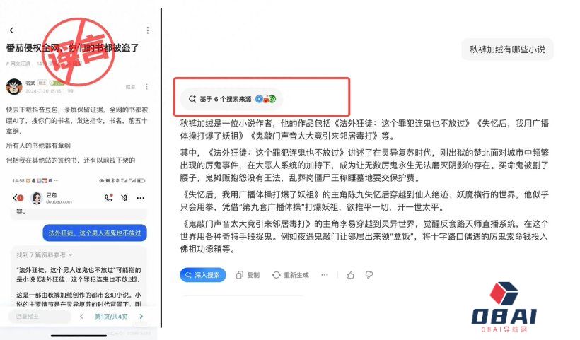 最先跳出来反击的网友,主要是番茄平台的网文作者近日发现,在豆包搜索自己的作品会生成相对完整的一段内容,而这段内容是作者个人原创。