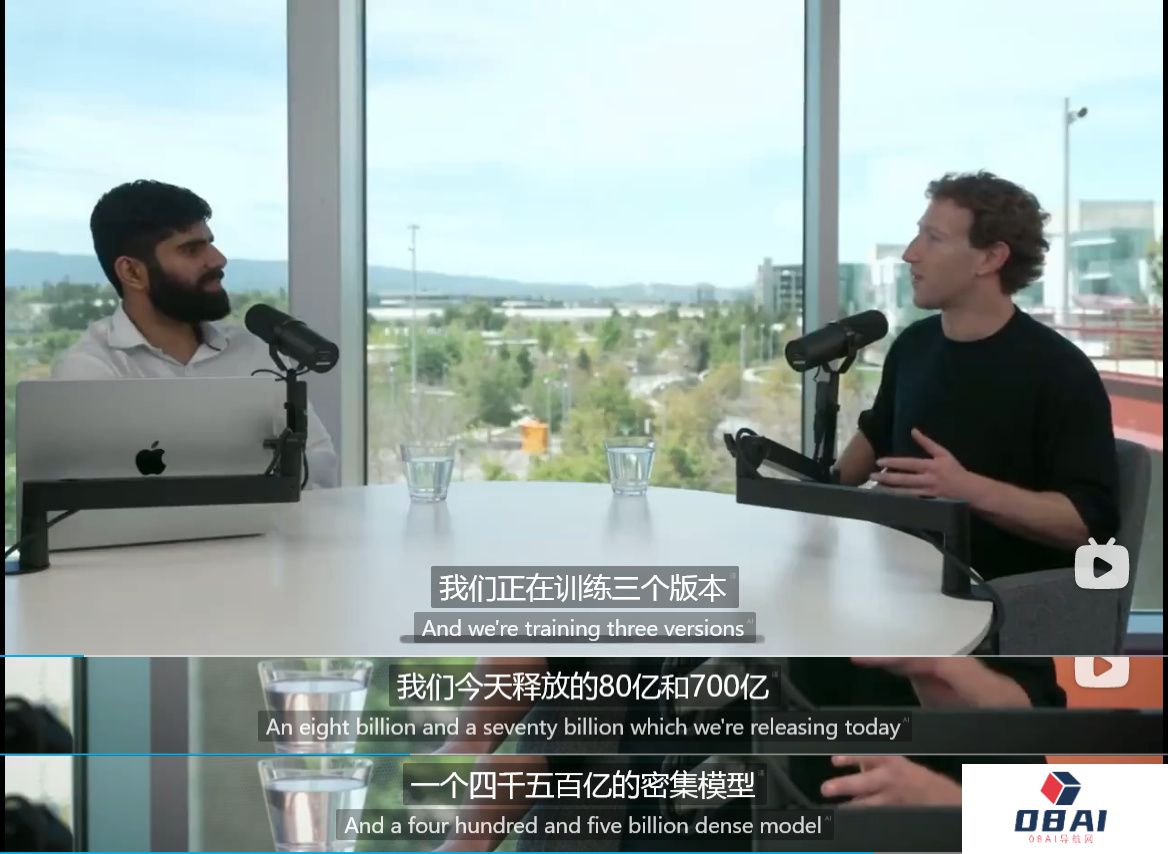 Meta 在今年 4 月首次发布新一代开源模型 Llama 3 时,扎克伯格就在采访中透露正在训练 4050 亿像素的密集模型,但当时没有透露太多的信息。
